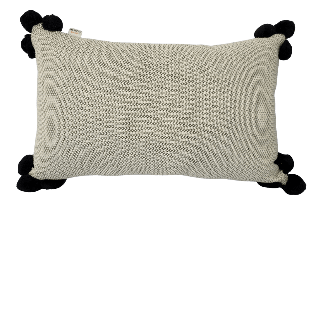 Acabamento com três pompons em cada canto.